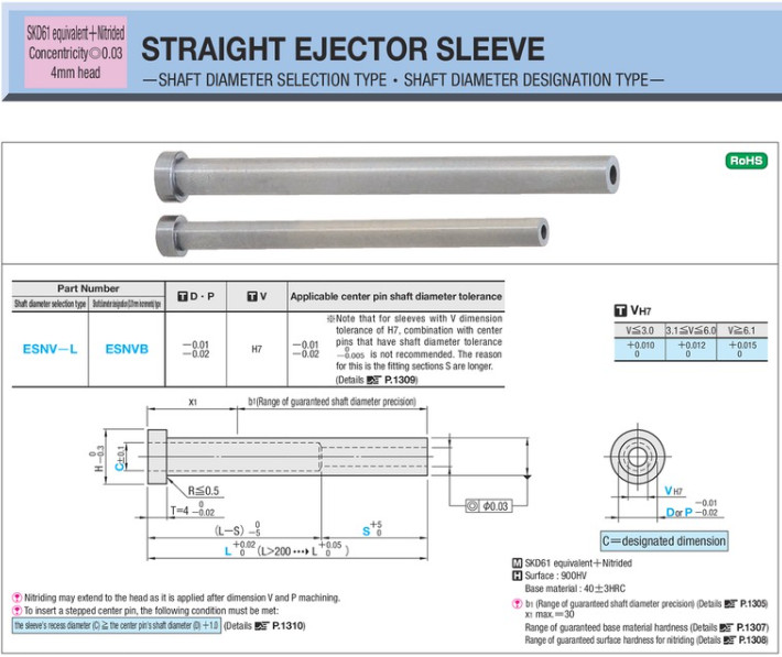 Áo bạc đẩy thẳng Misumi ESNV-L
