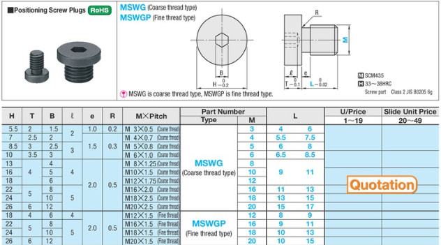 Bu-lông định vị Misumi MSWGP – Ren mịn