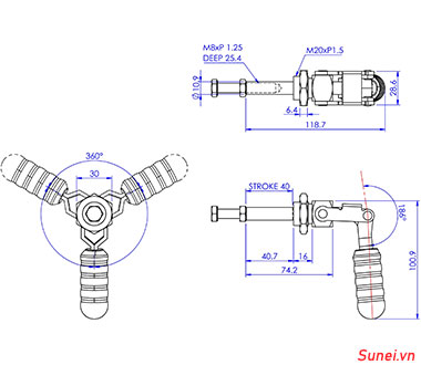 Cam kẹp GH36204M Push-Pull Toggle clamp là loại Cam kẹp đẩy ngang được sử dụng trong công nghiệp để gá kẹp nhanh sản phẩm nhanh, kẹp kiểu đẩy ngang nghĩa là ở khi hoạt động thì tay cầm của kẹp đẩy về phía giữ sản phẩm, thanh đẩy sẽ tịnh tiến lên, giữ chặt sản phẩm theo chiều tay đẩy.