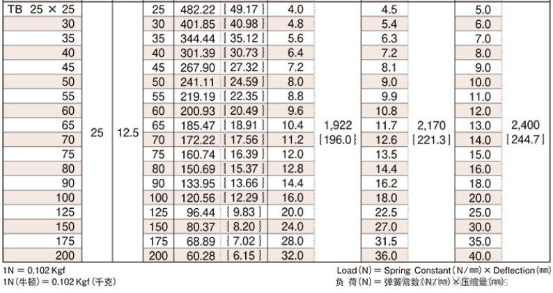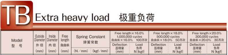 Lưu ý: Vui lòng không sử dụng TB có độ lệch vượt quá chiều dài tự do x 20.0% (Please do not use TB with a deflection exceeding Free length x 20.0%)