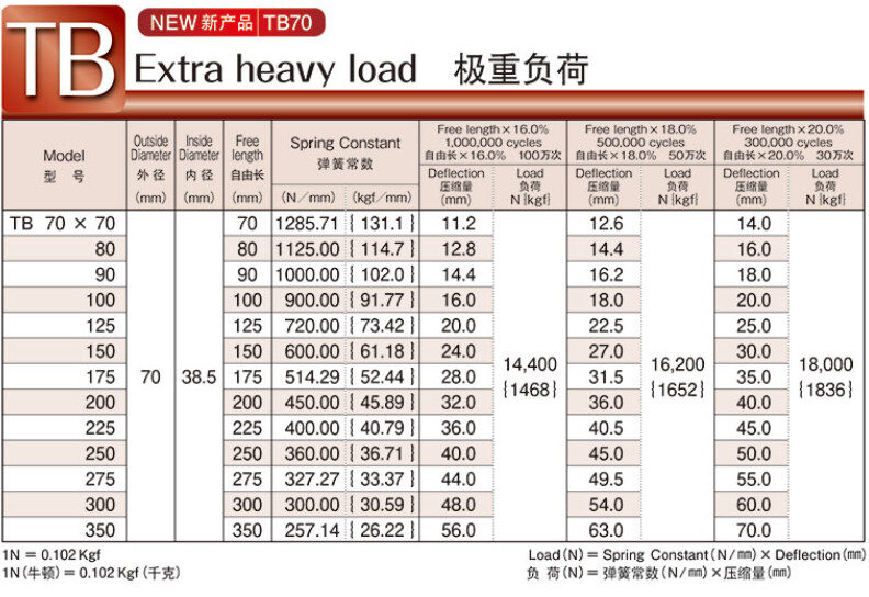 Lưu ý: Vui lòng không sử dụng TB có độ lệch vượt quá chiều dài tự do x 20.0% (Please do not use TB with a deflection exceeding Free length x 20.0%)