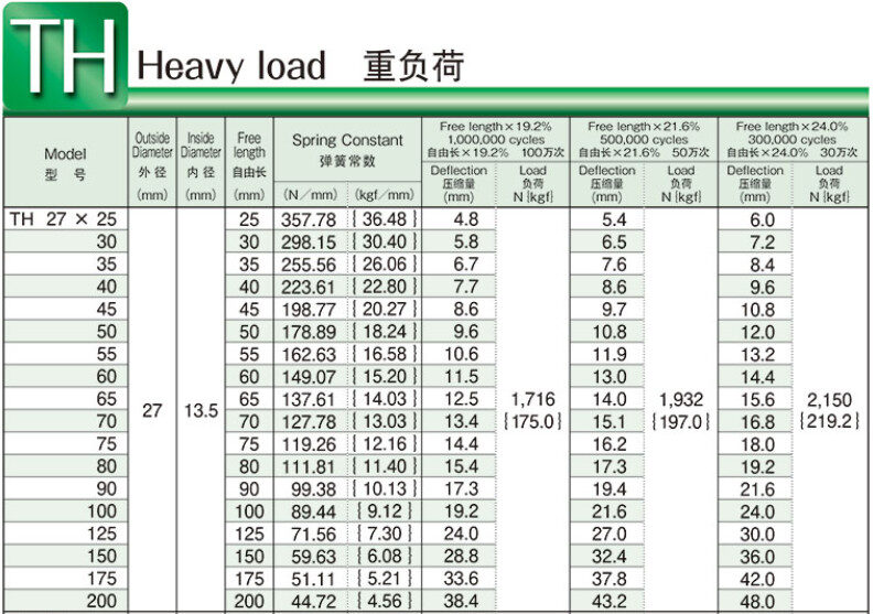 - Lưu ý: Vui lòng không sử dụng TH có độ lệch vượt quá chiều dài tự do x 24.0% (Please do not use TH with a deflection exceeding Free length x 24.0%)
